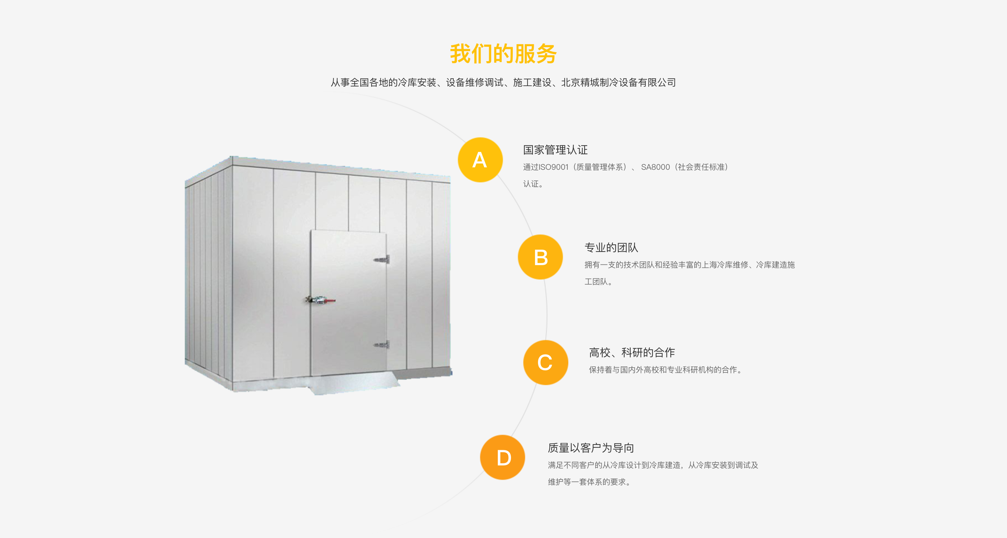 北京精城制冷設(shè)備有限公司致力于冷庫(kù)建造多年,建造的冷庫(kù)種類(lèi)很多,其中包括有海鮮冷庫(kù)、小型冷庫(kù)等等。北京精城制冷設(shè)備有限公司努力關(guān)注行業(yè)動(dòng)態(tài),積極投資于產(chǎn)品創(chuàng)新,合理分配客戶(hù)投資...